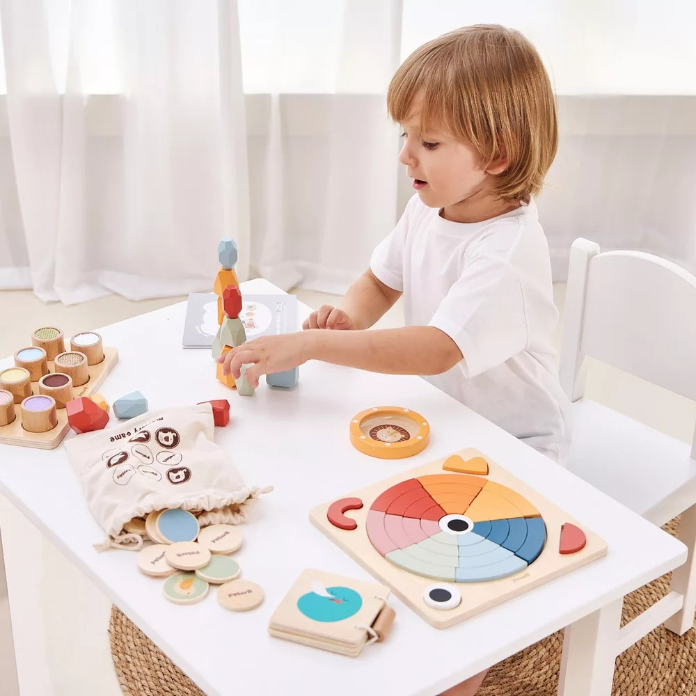 A szenzoros játékok ideális tanulási eszközök, amelyek segítenek csökkenteni a stresszt, és javítják az önismeretet és a kommunikációs készségeket. 8 különböző textúrából áll; ez a tapintótábla szenzoros stimulációt biztosít, és lehetővé teszi a gyerekek számára, hogy érintés útján azonosítsák a sima és érdes felületeket, majd helyesen párosítsák azokat. Ösztönzi a finommotorikát és elősegíti a szenzoros fejlődést.