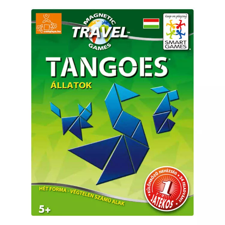 mart Games, Tangoes- állatok Fejleszti: - logikai következtetést - stratégiai előretervezést - képfelismerést és a térlátást A Tangoes művészi és geometriai elemeket tartalmaz a vizuális érzékelés fejlesztésére, felnőtteknek és gyerekeknek egyaránt. A Tangoes kiváló eszköz a probléma megoldási készség és a csapatmunka fejlesztésére is. Válasszuk ki a megoldani kívánt feladatot, majd a 7 darabkát felhasználva, próbáljuk meg kirakni. A darabok mágnesesek, így a helyükön maradnak. Ha elakadnál, csak fordítsd meg az oldalt és már előtted is a megoldás. A játékhoz 24 feladvány tartozik, de ezen felül kreativitásunkat is latba vethetjük.