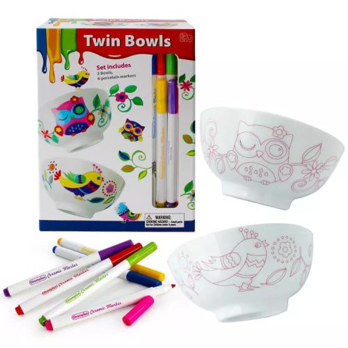 Színezhető reggeliző tál készlet. A készlet tartalmaz 2 darab reggeliző tálat és 6 darab speciális filctollat. Garantált szórakozást biztosít fiúknak és lányoknak egyaránt. Egyszerűen használható és könnyen megtanulhatóak a különböző lépések. Először langyos vízzel meg kell tisztítani a tálat, utána már a gyermekek fantáziáján a sor, hogy milyen színűre festi a már megrajzolt mintákat. A festés után 24 órát hagyni kell száradni, majd ezt követően ki kell égetni 150 Celcius fokon 25 percig, így maradandó lesz a remekmű. Az alkotás során fejlődik a kreativitásuk, kézügyességük és kitartásuk.