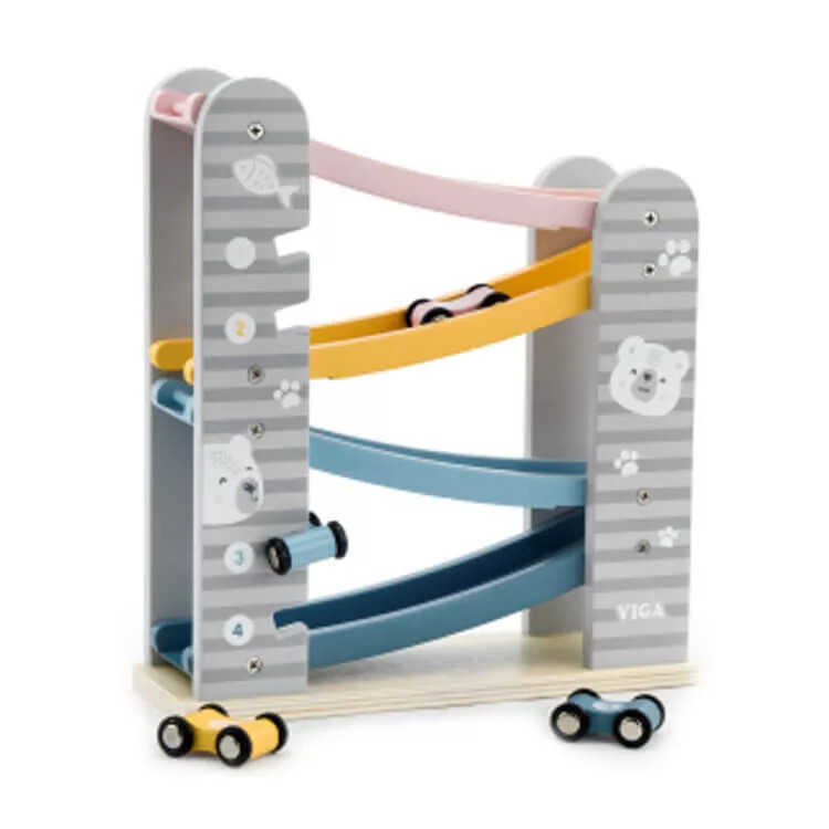 Az "Autók a lejtőn" egy innovatív és izgalmas fajáték, amely a kisgyermekek körében rendkívül népszerű. Ez a játék kiválóan alkalmas a kognitív és motorikus készségek fejlesztésére, miközben órákon át képes lekötni a gyerekek figyelmét. A játék lényege, hogy négy színes autót kell egy lejtőn leengedni, amelyek a gravitáció hatására gyorsan lecsúsznak a pályán.