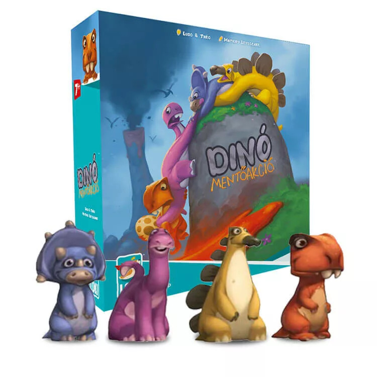 Dinó mentőakció társasjáték - az ellenfelünk csak az idő lehet! Vulkánkitörések és meteorítok veszélyeztetik a 4 kis dinót, akik nem kis kalamajkába kerültek. Segítsünk nekik megmenteni tojásaikat és felmenekülni a biztonságot nyújtó, felhők fölé magasodó hegyekre. Csomag tartalma: - 4 dinó figura - 1 játéktábla - 4 vulkán - 4 hegy - 9 akadály - 58 veszély lapka - 6 dinó tojás - 1 szövet zsák - Magyar nyelvű leírás