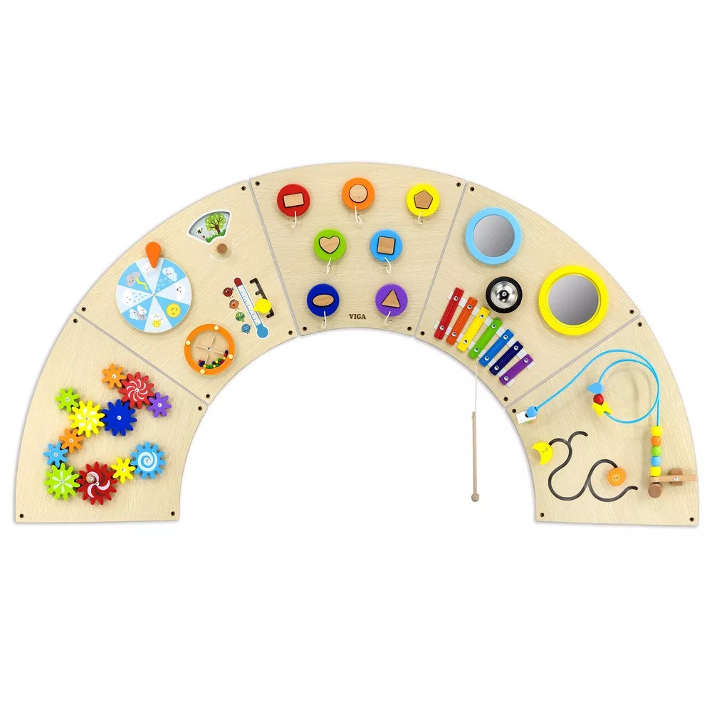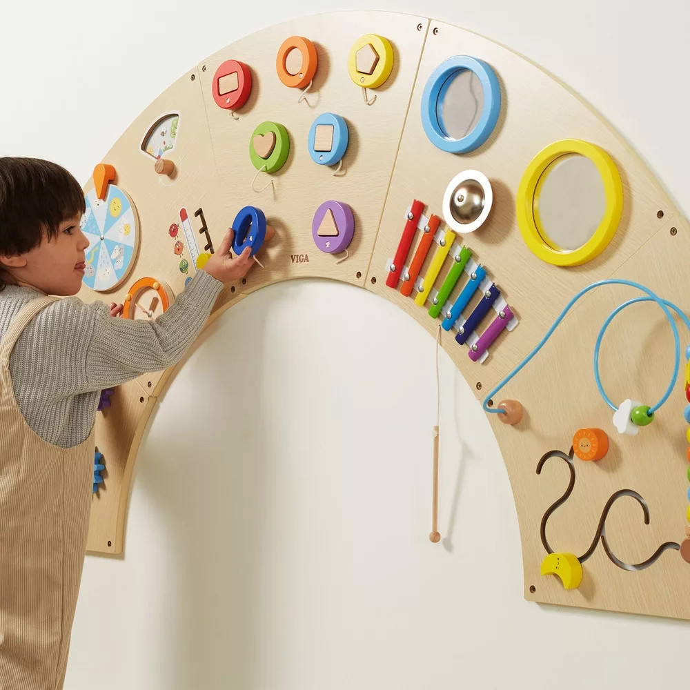 Összetett készségfejlesztő játék, matatófal (falra szerelhető, szivárvány)